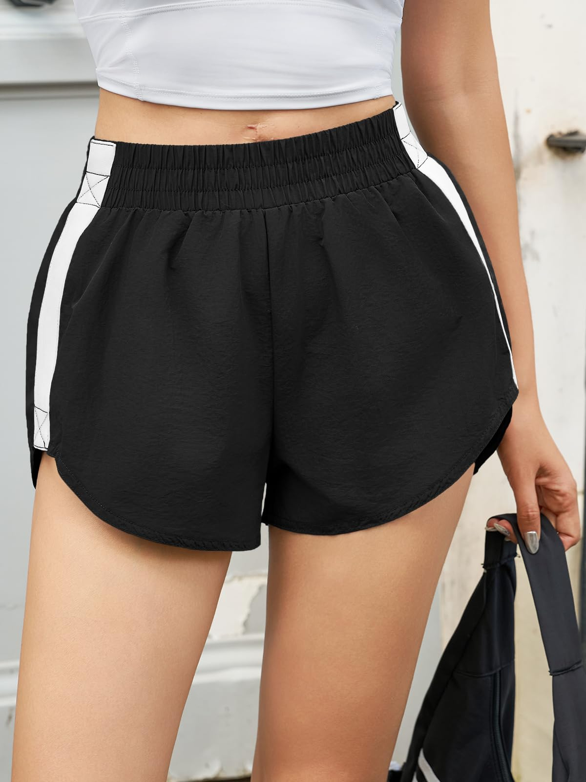 - Elastic High Waisted Design: Striped Track Shorts elevate your workout look with a flattering high-waisted silhouette that smooths and supports your core. Perfect for running, gym sessions, or casual wear